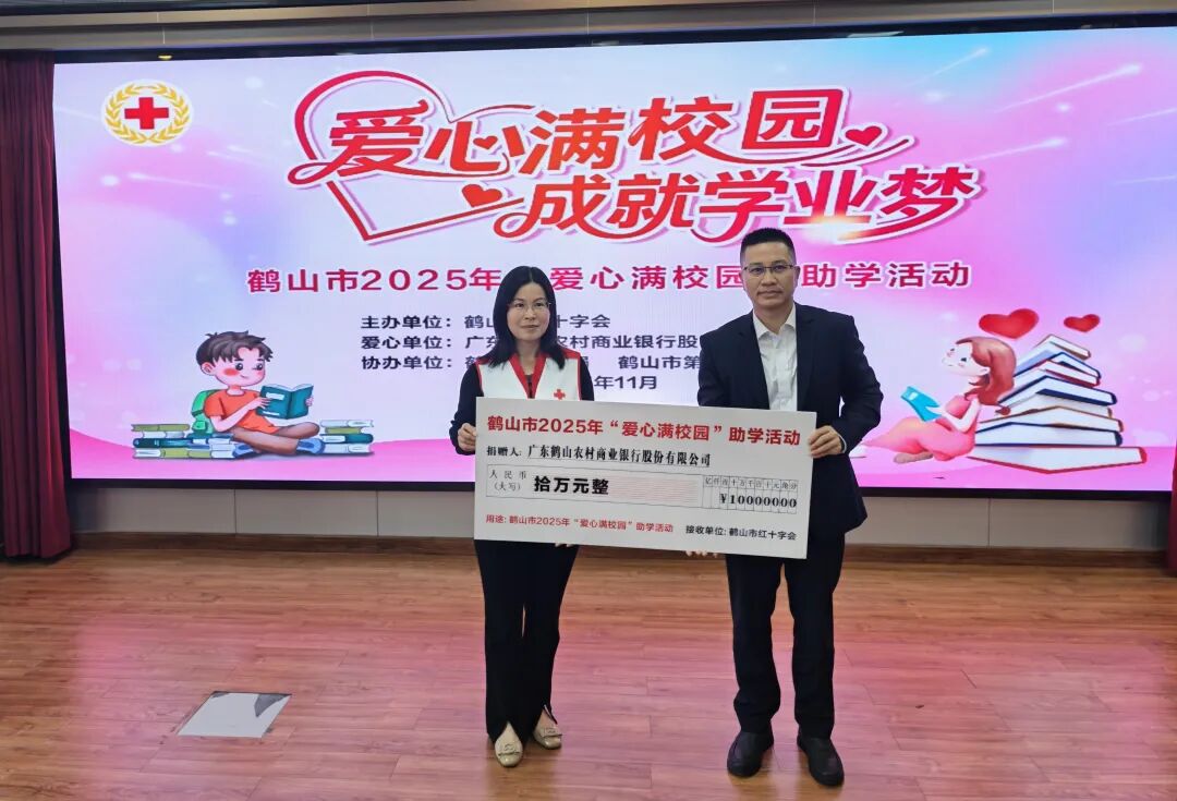鹤山农商银行向市红十字会移交2025年助学金支票,延续了连续六年的爱心捐助传统,用实际行动践行企业社会责任。