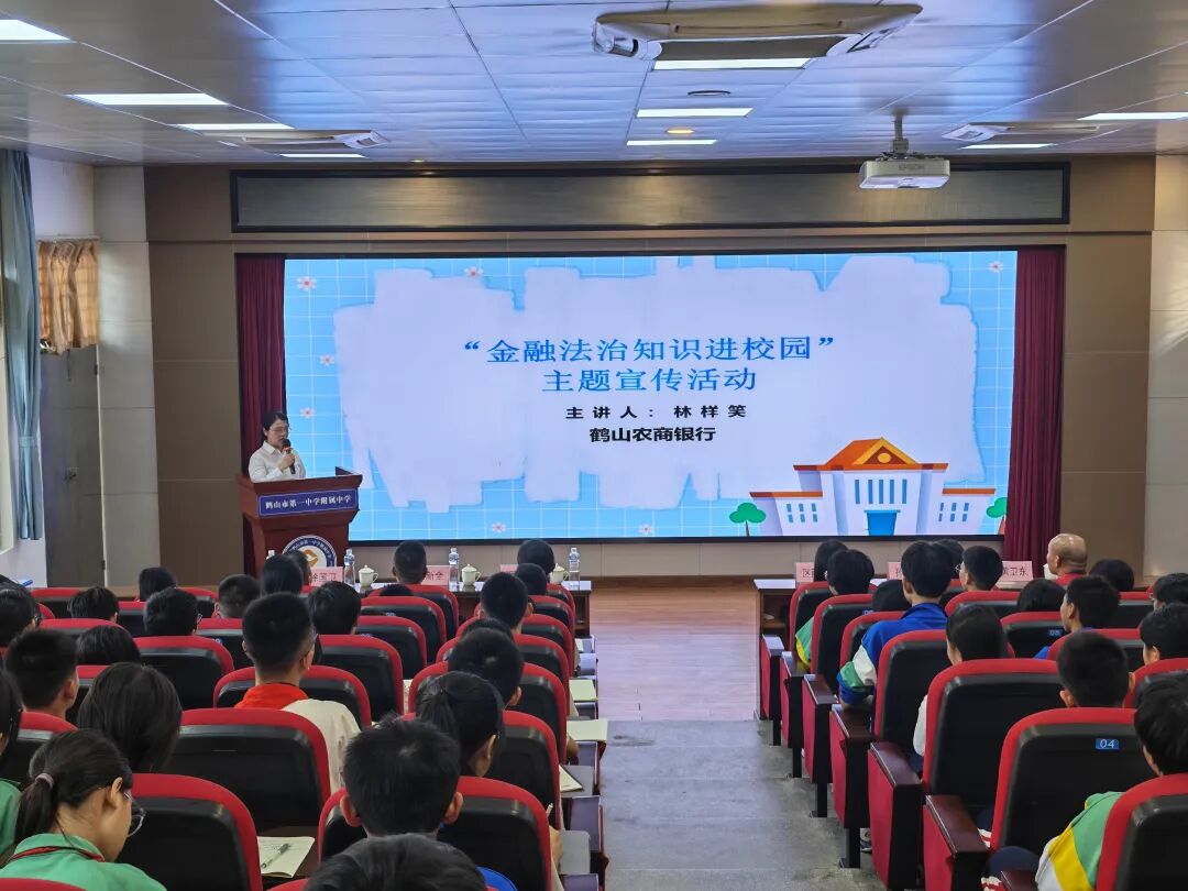 活动最后,鹤山农商银行金融讲师开展金融法治知识讲座,通过案例讲解、有奖问答等形式,向师生普及电信网络诈骗防范知识,助力筑牢校园安全防线。