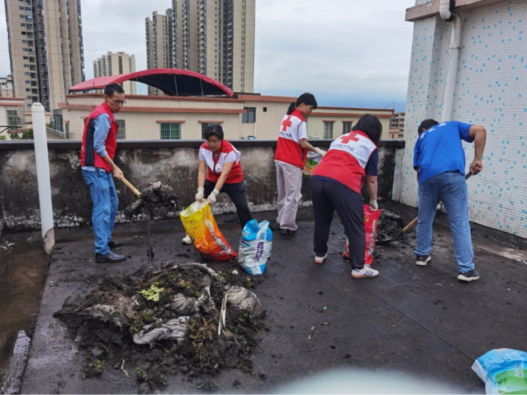 市红十字会党员干部、红十字志愿者开展爱国卫生运动