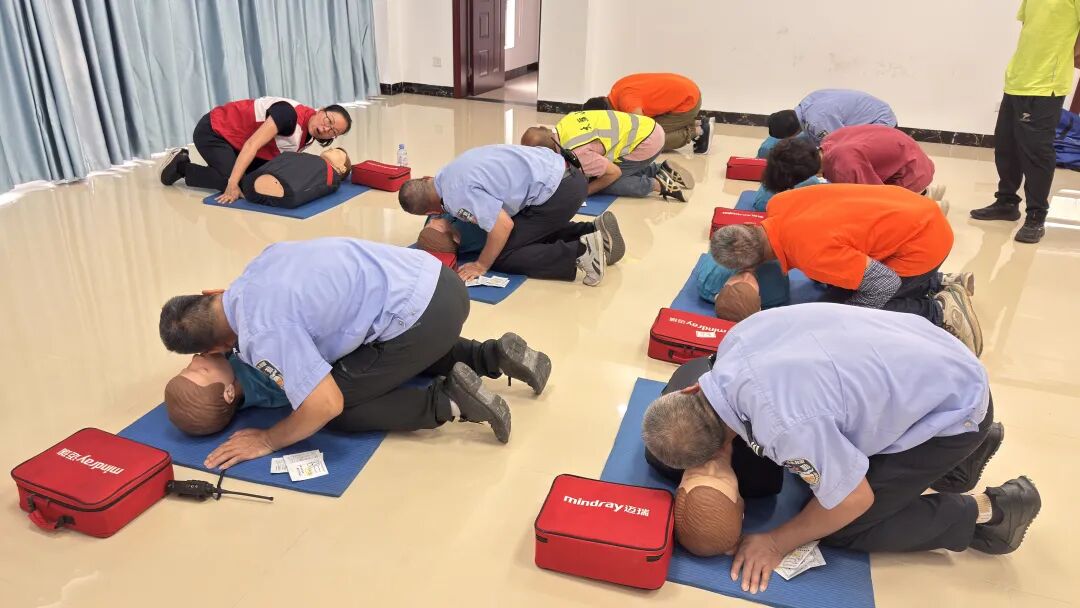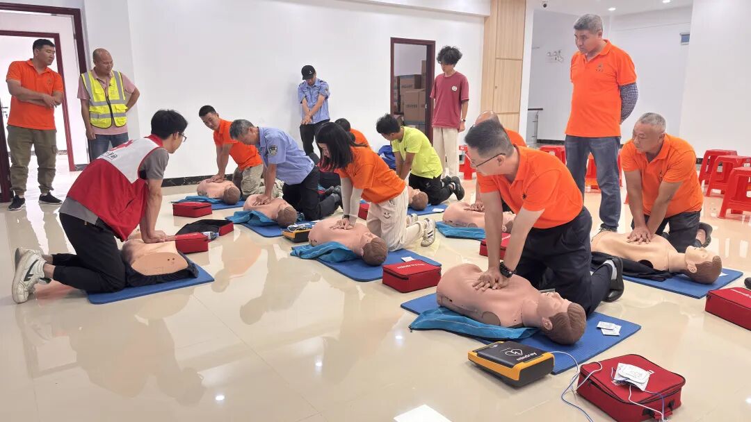 培训现场,红十字应急救护师资围绕景区高频突发情况,针对游客心脏骤停、中暑、跌倒摔伤等危急场景,重点讲解心肺复苏(CPR)标准操作、AED(自动体外除颤器)使用方法,用真实案例深刻阐释急救“黄金四分钟”的重要性,让大家懂原理、知风险、会应对。