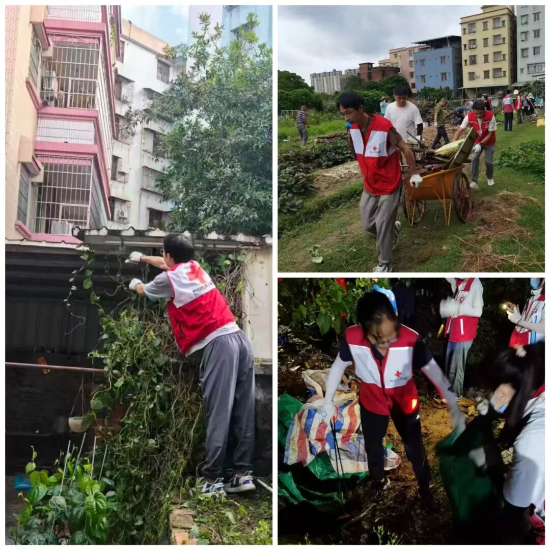 如在清理中东西冲尾村村边菜地孳生地时,下着大雨,大量因水浸泡而腐败变质的生活垃圾散发出刺鼻气味。红十字志愿者们冒雨奋战,有的负责铲垃圾,有的负责拉斗车,一起迅将沉重的脏垃圾搬上清运车。经过连续一天的奋战,累计从该孳生地清运垃圾杂物6卡车。