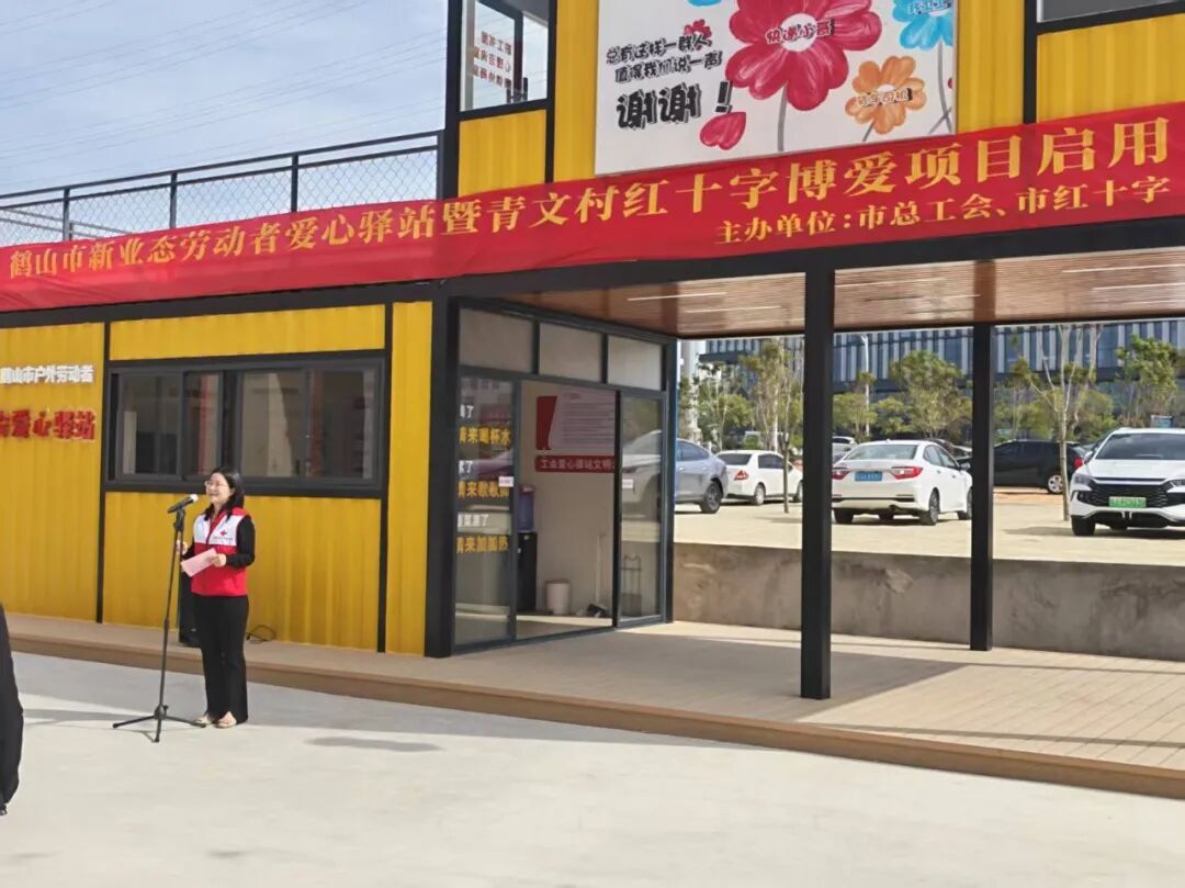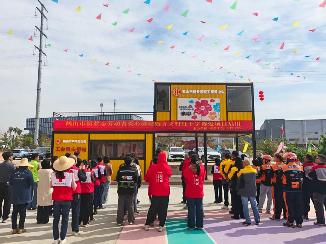 鹤山市总工会、鹤山市红十字会、珠西物流管委会、青文村委会倾力合作,共建共享,江门市红十字会常务副会长黄集文,江门市总工会副主席何玉红,鹤山市人大常委会副主任、总工会主席储涂应,鹤山市总工会常务副主席黄红梅,鹤山市红十字会常务副会长区丽英,移动公司总经理徐晓丹以及市委社工部副部长刘勇军,珠西物流管委会副主任陆华,龙口镇党委委员、镇总工会主席李高东,市人社局执法大队大队长吴兆胜等领导,与来自珠西物流、韵达快递、顺丰快递、饿了么的50余名新业态代表参加启用仪式。